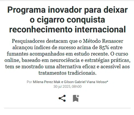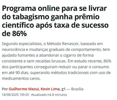 Você tem 7 dias para testar o Método Renascer. Se não sentir que está avançando no caminho para parar de fumar, devolvemos 100% do seu dinheiro.
